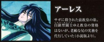 Un dernier ouvrage, le "Saint Cloth Mythology ~ God Edition" (décembre 2016), rappelle l'histoire du Pope Āres. Il y a 13 ans, Saga a tué le vrai Āres et a pris sa place.