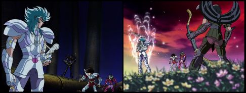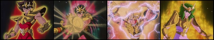Les deux premiers éléments tirent leur référence de l'oeuvre originale — des Saints vêtus de leurs Cloths — alors que le dernier est tiré de "Mythology".
