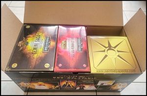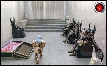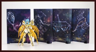 Les 3 Gold Saints — Leo Aiolia, Aries Mū et Scorpion Milo — auparavant sortis sont à l'honneur et 3 Surplices inédits sont exposés. Ils présentent l'originalité de présenter des pièces cassées comme dans l'animé.