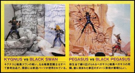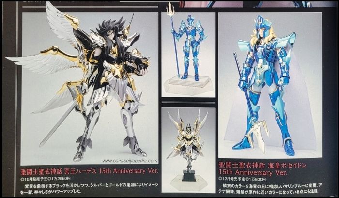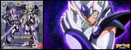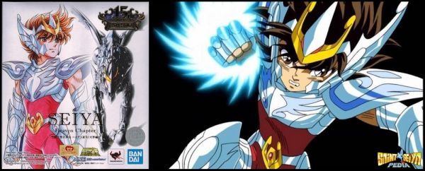 Pegasus Seiya (Final Bronze Cloth) et Lord of the Death Hades de la série EX sont mis à l'honneur par le constructeur pour la présentation du produit.