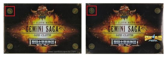 Le nom attribué aux figurines est également aperçu en rōmaji sur les tranches des boîtes Saint Cloth Myth et Saint Cloth Myth APPENDIX permettant ainsi la lecture dans une langue autre que le japonais. Plus tard, il peut figurer sur les différentes faces des boîtes Saint Cloth Myth EX.