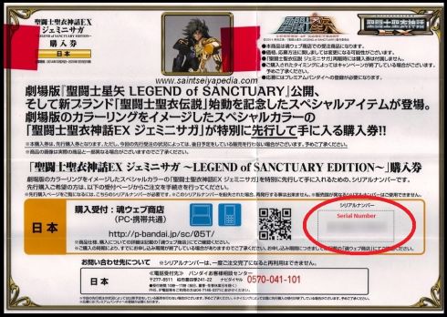 - Un modèle d'exposition de "Leo Aiolia - Saintia Shō Color Edition" et "Gemini Saga - Saintia Shō Color Edition Color Edition" ont été présentés lors du salon Tamashii Nation 2019 organisé du 25 au 27 octobre à Akihabara, Tokyo.