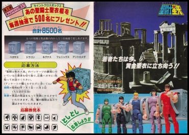 Le premier chapitre du manga Saint Seiya voit le jour en décembre 1985 dans le magazine Weekly Shōnen Jump et très rapidement, la série TV produite par Tōei Animation est diffusée d'octobre 1986 à avril 1989 pour un total de 114 épisodes. La diffusion est accompagnée par la commercialisation d'une marque inédite de figurines développée par Bandai : les Saint Cloth Series.