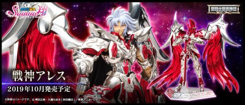Quatrième sortie de la série Saintia Shō après une apparition inattendue à la fin de l'épisode 10 diffusé le 28 février 2019. Saga devenu le dieu de la guerre Arès apparait à la fin du générique de fin. Un mois plus tard, le 19 mars, un produit inédit est annoncée en tant que Saint Cloth Myth EX et un Dengenki Hobby visuel de sa silhouette est montré au public sur la page Tamashii Web consacrée à "Scorpion Milo - Saintia Shō Color Edition".