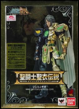 À l'occasion de la sortie du premier produit Saint Cloth Myth EX honoré par Gemini Saga sorti en août 2011, des stands similaires à la série Myth sont mis en vente simultanément. Le coffret offre à présent la particularité de fournir des Effect Parts ainsi qu'un carton décoratif qui peut être fixé en arrière plan.