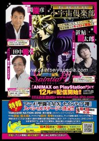 - Un modèle d'exposition de "Scorpion Milo - Saintia Shō Color Edition Color Edition" et "Leo Aiolia - Saintia Shō Color Edition Color Edition" ont été présentés lors du salon Tamashii Nation 2018 organisé du 26 au 28 octobre à Akihabara, Tokyo. Un stand Saint Seiya : Saintia Shō est prévu à cet effet.