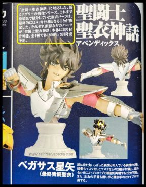 Très rapidement, le 24 avril 2003, le premier prototype d'une figurine est présenté dans la presse à travers le Figure Ō n°65 et les premières images de la Pegasus Cloth sont dévoilées au grand public. Appelée "Kyūkyoku Cloth" (究極聖衣) ou encore "Bandai Kyūkyoku Cloth" (バンダイ究極聖衣), elle reprend le principe des Saint Cloth Series pour lequel il est possible de monter une armure sur un personnage mais aussi de la retirer ou encore de monter la Cloth en forme Objet.