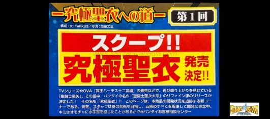 La marque est pour la première fois honorée dans le numéro 65 sorti en avril 2003 à travers une colonne appelée "Saint Seiya - Kyūkyoku Cloths heno Michi" (聖闘士星矢 究極聖衣への道) que l'on peut traduire par "Saint Seiya - Le chemin vers les Kyūkyoku Cloths" et chacune est numérotée par un round.